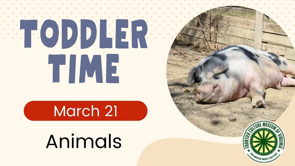 ** SOLD OUT ** March 21, 2026: Our final Toddler Time will be focused on the animals of the Frontier Culture Museum! Your child will have the opportunity to meet some of the critters who make their home at the FCM and make a puppet in honor of their favorite new friend. LEARN MORE: https://frontiermuseum.org/series/toddler-time-2/